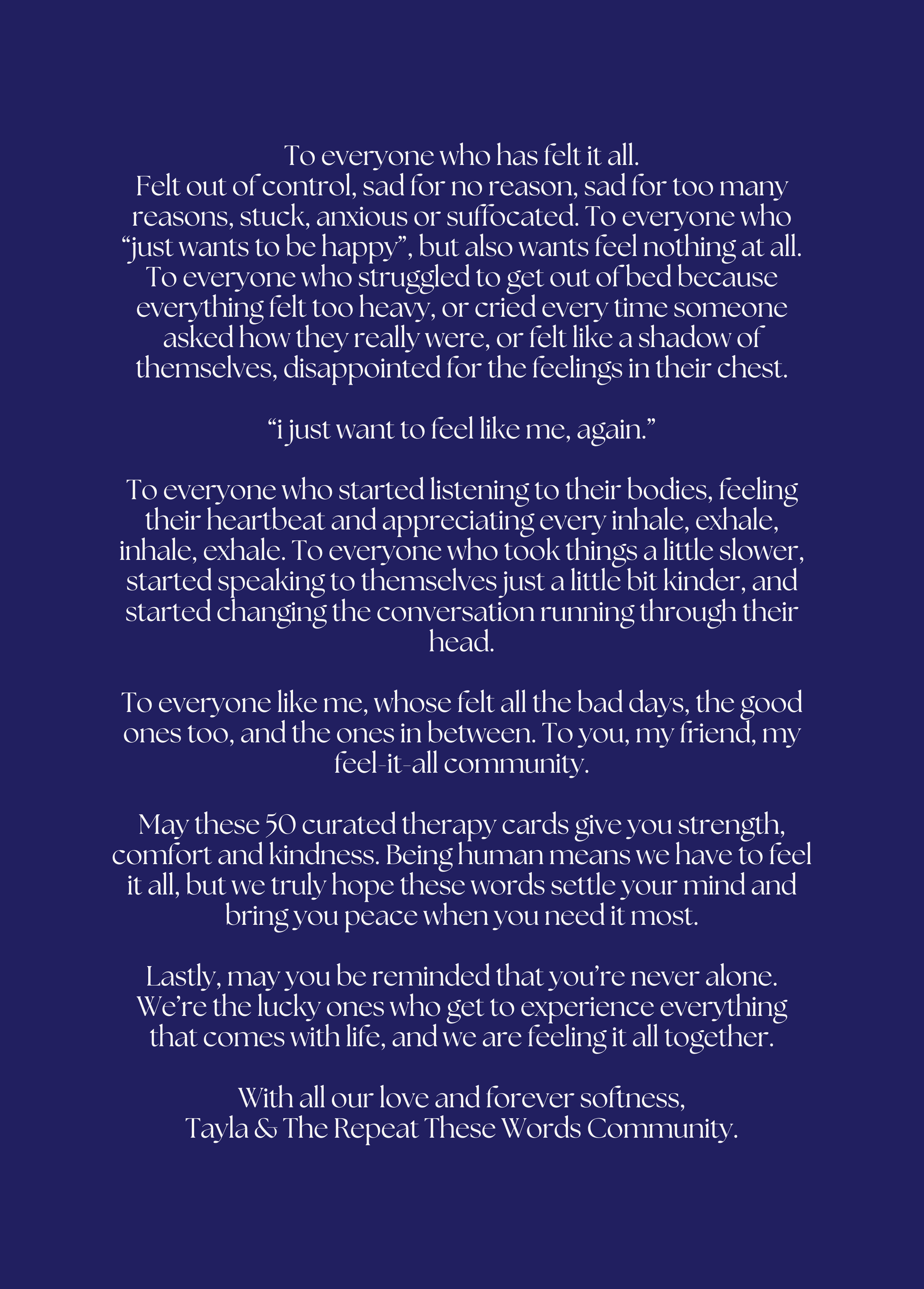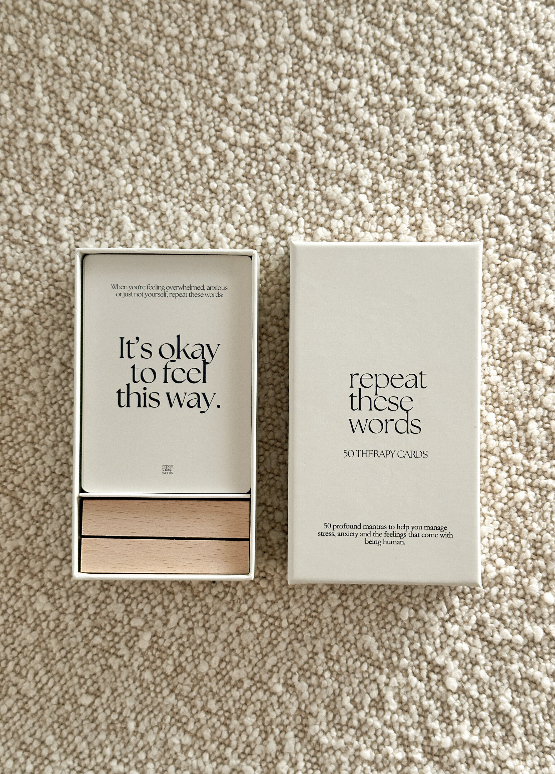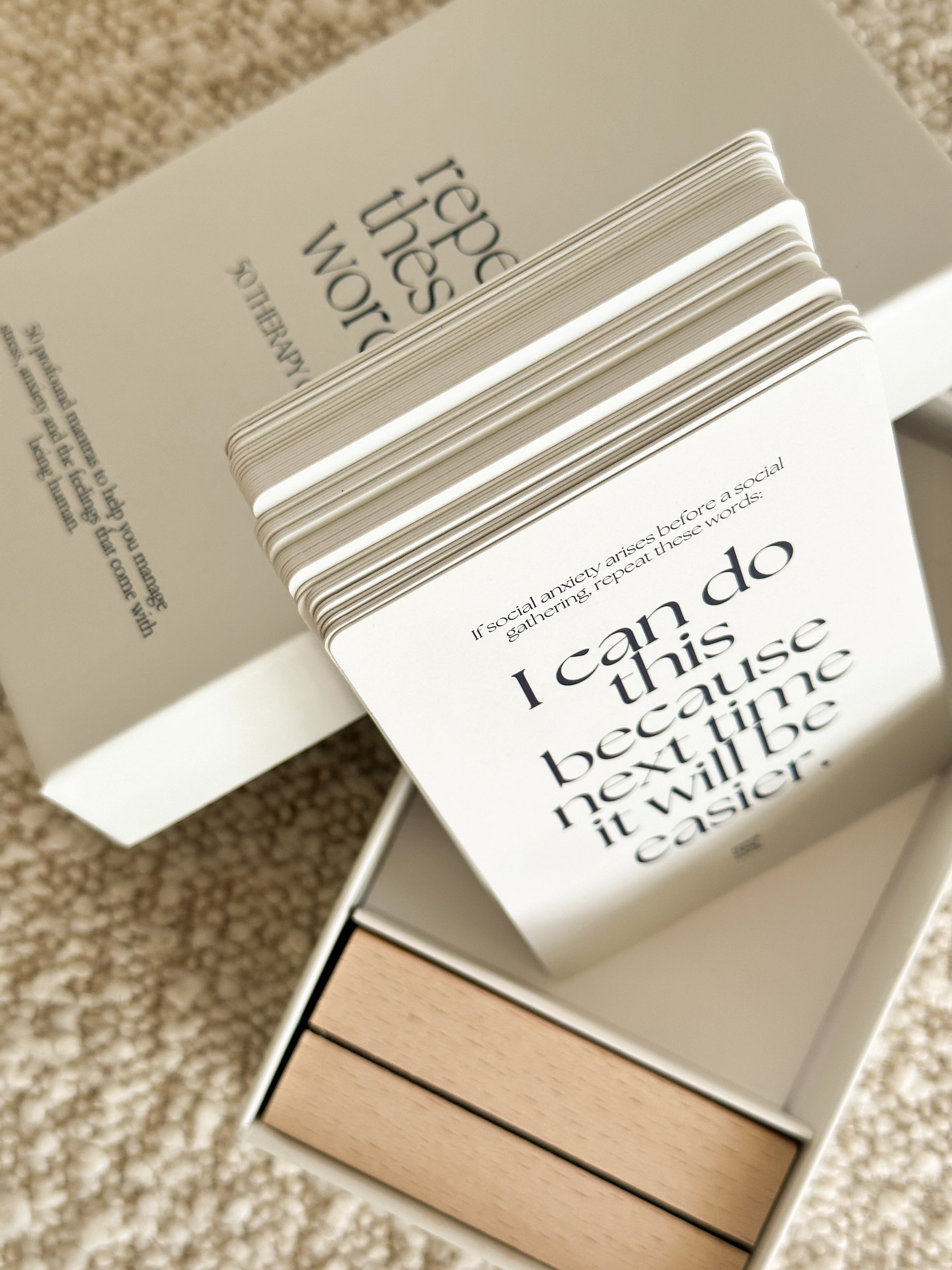 Repeat These Words Therapy Cards have been carefully curated from self-help readings, therapy sessions, and years of doing the work. Backed by science and research, repeating these words with intention (and often) will transform the conversation in your head to one of truth, softness and kindness.